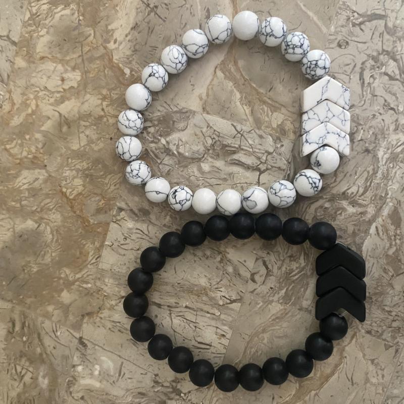 Choice of semi-precious 6mm matte beaded bracelet in onyx or howlite on durable stretch cord with triple chevron lucky few