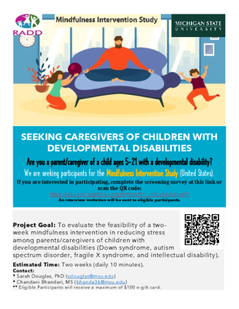 Parents and caregivers of children with developmental disabilities often experience stress and a need for coping methods due to the unique challenges of caregiving. This study seeks to evaluate the feasibility of a brief, two-week online mindfulness intervention designed to reduce caregiver stress and promote overall well-being.
