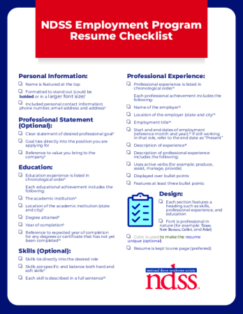 Our resume resources are designed to help individuals with Down syndrome create strong resumes. The Resume Guide provides easy-to-follow guidance on what to include in a resume, such as personal contact information, work experience, education, and skills. It offers practical advice to help create a clear and professional resume. The Resume Checklist is a simple list to ensure all important details are included and nothing is missed. Additionally, our Resume Template is a ready-made document that can be downloaded and used when building a resume. Together, these resources aim to make resume writing easier and more accessible to job seekers with Down syndrome.