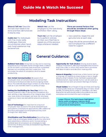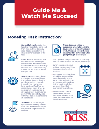 The Employment Program is proud to present Guide Me & Watch Me Succeed. This valuable resource is designed to support employers as they train their employees with Down syndrome.